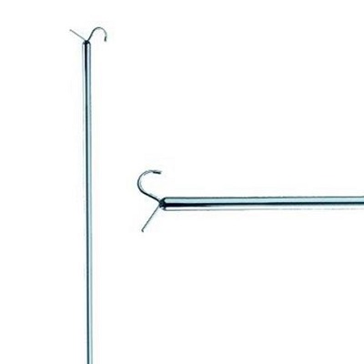 Stok met haak, lengte 125 cm, om kledinghangers van hogere rekken te kunnen halen. Confectiehaak.