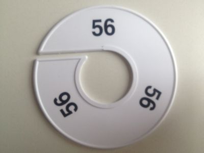 Maatring 11 cm wit met zwarte bedrukking 56 Diameter van de maatring is 11cm, en de diameter van het gat is 4cm.