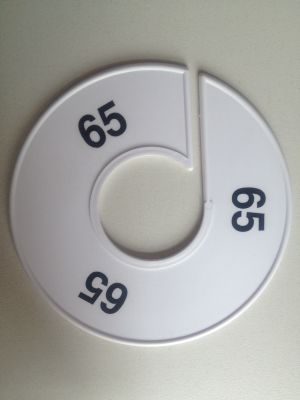 Maatring 11 cm wit met zwarte bedrukking 65 Diameter van de maatring is 11cm, en de diameter van het gat is 4cm.
