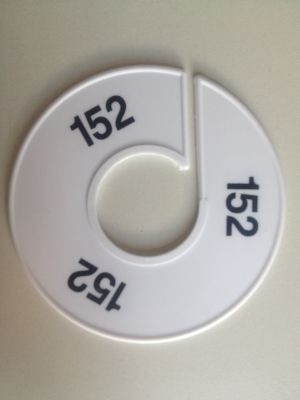 Maatring 11 cm wit met zwarte bedrukking 152 Diameter van de maatring is 11cm, en de diameter van het gat is 4cm.