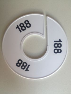 Maatring 11 cm wit met zwarte bedrukking 188 Diameter van de maatring is 11cm, en de diameter van het gat is 4cm.