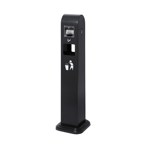 Asbak zwart metaal vrijstaand, voor sigarettenpeuken en afval voor buiten bij de ingang van uw bedrijf. Hoogte 120 cm, voetafmeting 31,5 x 31,5 cm. Gewicht 11,6 kg. Geschikt voor buiten gebruik. Uitermate geschikt om bij de ingang van uw bedrijf, restaurant, hotel, winkel, kantoor, expo, musea etc. te plaatsen. Makkelijk te verplaatsen en legen. Inhoud van de staande asbak is: 11 liter. Er zijn geen bevestigingsmaterialen bij om de paal te verankeren. Hij staat normaal gesproken los en is makkelijk weg te zetten (wel om paal & voet te bevestigen)