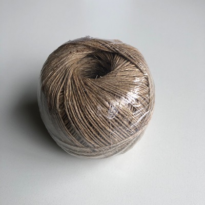Vliegertouw nummer 2/6, 2-voudig getwijnd, natuurvezel, middelsterk, afmeting bol van ca. 200 gram. Binders touw. Bindtouw. Ca. 250 meter per kluw.