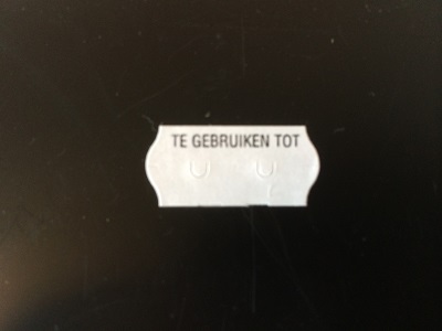 Etiket 26x12 golfrand wit permanent bedrukt >> Te gebruiken tot << 2-sl 54.000 (=36 rollen a 1500 etiketten) Gommering / kleefkracht 2. Voorzien van combistans.