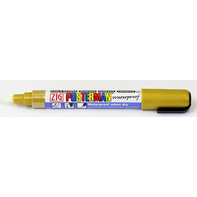 ZIG Posterman PMA-50 stift smal, beitelpunt met schrijfbreedte 2-6 mm, goud, niet met water uitwisbaar. PMA-50/101 gold. Enkel te gebruiken op een niet poreuse ondergrond. Te verwijderen met een reiniger. (Lukt niet met een sopje) Zo lang de voorraad strekt. Gaat uit assortiment.