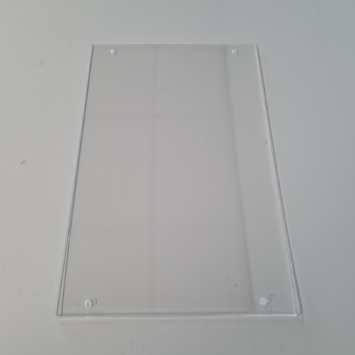 Acryl U-houder A4 verticaal geen gaatjes, nettomaat is dus breed 21cm x hoog 30 cm. Plexiglas dikte 2mm, dubbelgeslagen 2x2 mm.