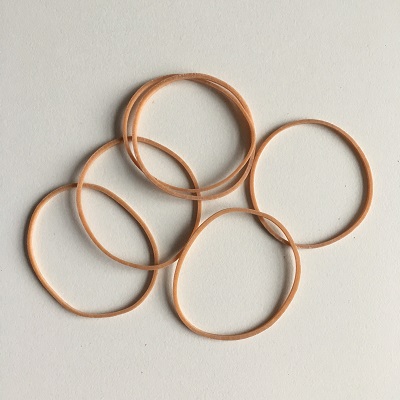 Elastiekjes rubber breed 1,5mm nr.16 verpakking 1kg, plat gemeten 60 mm, diameter 40mm. Elastiek naturel P.40/1,5mm. (bruin)