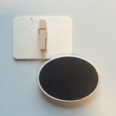 Krijtbordje met houten knijpertje (afmeting van zwarte leiplaat is 7x5 cm) Geschikt voor krijtjes en krijtstiften. Er zijn 2 modellen, ovaal en rechthoekig, die in de mix geleverd worden. Prijs is per stuk. Zo lang de voorraad strekt - niet meer te bestellen indien op.