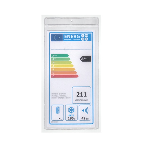 Etikettenhüllen mit 2 Fächer, Fachgröße oben 110x40mm Fachgröße unten 110x155mm transparent mit Einschub von oben, VPE 100 Stück. Mit verstärkte Kopfleiste, kleiner Rundloch eingeschweißt.
