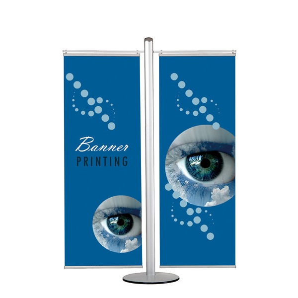 Info bannerhouder met klemlijst breedte 61,8 cm Voetplaat rond metaal diameter 45 cm. Met een aluminium buis van 190 cm, diameter 7x7cm. Klemlijst set voor bovenzijde breedte 60cm. Materiaal en kleur aluminium. Gewicht ongeveer 18 kg.