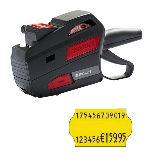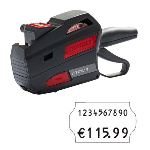 Prijstang Contact Premium 3219 (7.32 Super) afdruk grote prijs inclusief € teken. Cijferhoogte 8,5mm. Geschikt voor onze golfrand etiketten met afmeting 32x19 mm. Indien niet voorradig, levertijd ongeveer 2 weken.
