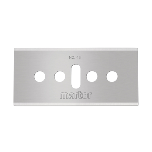 Mesje Martor Industrie nr 45 Vervangingsmesjes voor Martor Secumax Easysafe 121001, Secunorm 175 en Secunorm Handy. Ideaal voor karton Werk je met een kartonmesje zoals de Secunorm 175 voor het snijden van bijvoorbeeld tweelaags karton, kunststof strapbanden en andere stevige materialen? Kies dan voor deze ideale navulmesjes. Vier snijvlakken: De stevige, metalen kwaliteitsmesjes zijn voorzien van twee snijkanten en vier scherpe hoeken. Haal meer uit dit mesje door het te draaien en te keren wanneer het snijvlak bot wordt. Zo is het mesje maar liefst vier keer als nieuw te gebruiken. Verpakkingseenheid: 10 messen verpakking Afmetingen (L x B x H) 39 x 18,5 x 0,3 mm Gewicht product: Snijdiepte 1-10 mm Basismateriaal Staal Vervangmesje Verpakkingseenheid Rechthoekig Industrie mesje NR. 45 met 10 in dispense.