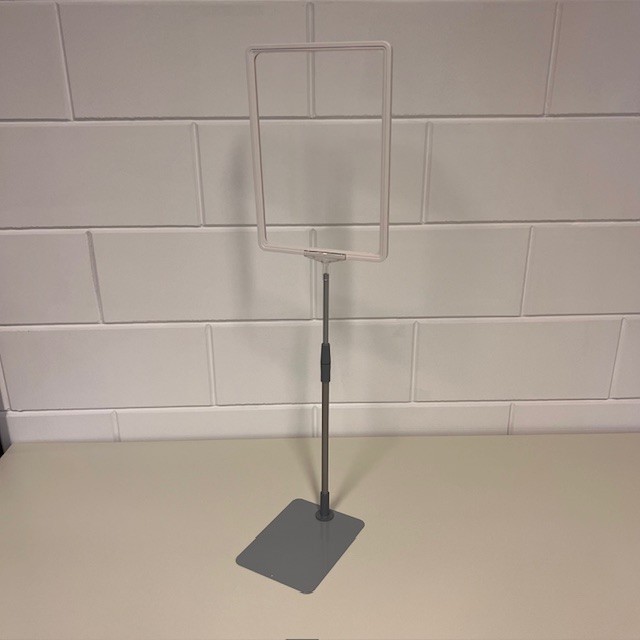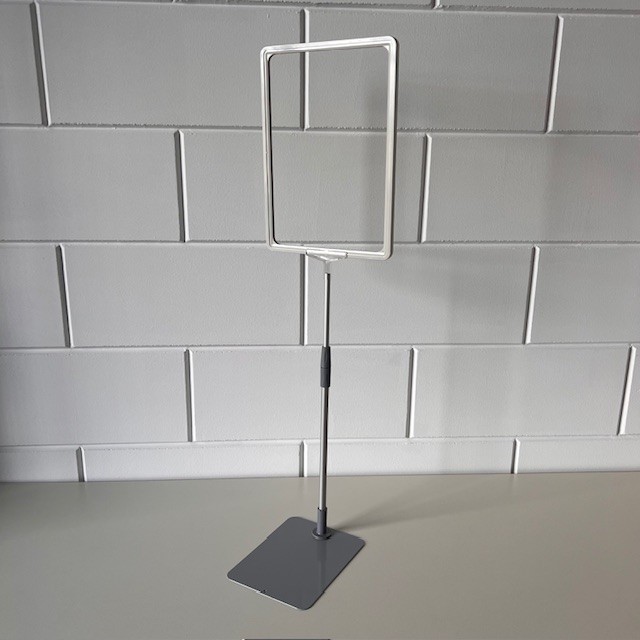 Prijskaartstandaard A4 wit raam met transparant T-stuk, verstelbare aluminium buis en metalen grijze voetplaat. Verstelbaar/ uitschuifbaar van 32 tot 58 cm. Dit is voor ons een samengesteld artikelnummer uit 4 andere artikelnummers. Bij >Gerelateerde artikelen< kunt u de huidige voorraad zien. Verkoopprijs € 11,77 excl.btw.