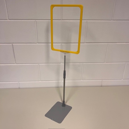 Standaard A4 geel raam met transparant T-stuk, verstelbare aluminium buis en metalen grijze voetplaat. Verstelbaar/ uitschuifbaar van 32 tot 58 cm. Dit is voor ons een samengesteld artikelnummer uit 4 andere artikelnummers. Bij >Gerelateerde artikelen< kunt u de huidige voorraad zien. Verkoopprijs € 11,77 excl.btw.