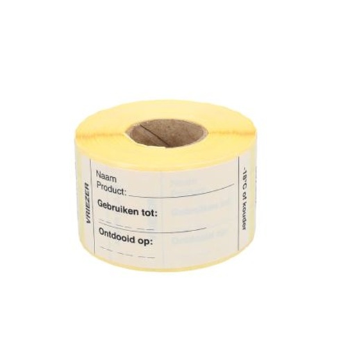 Etiket VRIEZER 35x75mm HACCP labels permanent klevende sticker, geschikt voor in de diepvries, afmeting 35x75mm. 250 Stuks per rol. Geleverd op de rol. Rolbreedte 38mm. HACCP stickers. - Afmeting: 35x75mm - Vorm: rechthoek - Bedrukking: Vriezer, Naam product, Gebruiken tot, Ontdooid op, -18C of kouder - Kleur: wit + zwart - Materiaal: zelfklevend papier - Kleefkracht: permanent (sterk klevend) - Randafwerking: afgeronde hoeken - Aantal per rol: 250 etiketten - Prijs per: 1 rol - Verakking: op rol Wat zijn de voordelen? Deze etiketten zijn ideaal voor het eenvoudig labelen van in keuken geprepareerde producten voor bewaren in koeling. Wettelijk verplicht om HACCP stickers (ook wel voedingsetiketten, houdbaarheidsetiketten, daglabels, dagstickers) en allergenenstickers te gebruiken. HACCP staat voor Hazard Analysis Critical Control Points. Ook wel gevarenanalyse en kritische controlepunten.