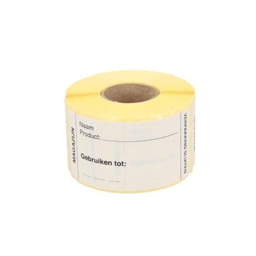 Etiket MAGAZIJN 35x75mm HACCP labels permanent klevende sticker, geschikt voor in de diepvries, afmeting 35x75mm. 250 Stuks per rol. Geleverd op de rol. Rolbreedte 38mm. HACCP stickers. - Afmeting: 35x75mm - Vorm: rechthoek - Bedrukking: Magazijn, Naam product, Gebruiken tot, Verpakking sluiten - Kleur: wit + zwart - Materiaal: zelfklevend papier - Kleefkracht: permanent (sterk klevend) - Randafwerking: afgeronde hoeken - Aantal per rol: 250 etiketten - Prijs per: 1 rol - Verakking: op rol Wat zijn de voordelen? Deze etiketten zijn ideaal voor het eenvoudig labelen van in keuken geprepareerde producten voor bewaren in koeling. Wettelijk verplicht om HACCP stickers (ook wel voedingsetiketten, houdbaarheidsetiketten, daglabels, dagstickers) en allergenenstickers te gebruiken. HACCP staat voor Hazard Analysis Critical Control Points. Ook wel gevarenanalyse en kritische controlepunten.
