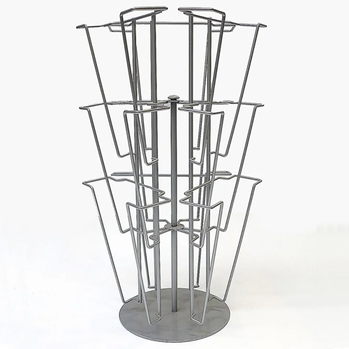 Wand brochurehouder draadmodel draaimolen met 9 vakken voor folders Din A4. Afmeting hoogte x diameter x voet : 54cm + Ø 34cm Top + Ø 20cm Base. Eenheid 1.