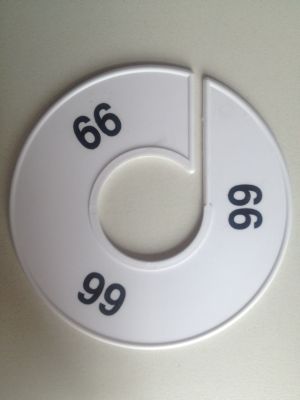 Maatring 11 cm wit met zwarte bedrukking 66 Diameter van de maatring is 11cm, en de diameter van het gat is 4cm.