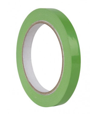 Tape groen 12mm x 66m pvc met grote kern. Plakband, verpakkingstape. Zelfklevend plakband. Geschikt voor de zakkensluiter met artikel 13240065.