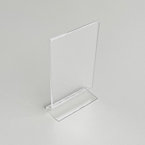 Menu-standaard acryl 10x15 cm - ééndelige prijskaarthouder met slingervoet. Dikte 1.8mm. Let op! De 10cm breedte is net iets smaller dan Din A6.