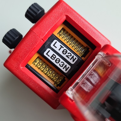 Prijstang Sato Duo 20, afdruk 10 cijfers op de bovenste regel en een prijs van 8 posities op de onderste regel, maximale afdruk Euro 9.999.99 Etiketafmeting 23x16.2 mm Deze codeertang is de opvolger van de Sato PB-220.