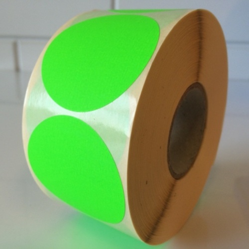 Etiket 50 mm rond fluor groen kleefkracht permanent, aantal etiketten 1000 stuks op rol. Kern diameter 40mm. FSC-C106281. - Afmeting: 50mm - Vorm: rond - Kleur: fluor groen - Materiaal: zelfklevend papier - Kleefkracht: permanent (sterk klevend) - Randafwerking: rond etiket - Aantal per rol: 1.000 etiketten - Prijs per: 1 rol Wat zijn de voordelen? Deze etiketten zijn ideaal voor het labelen van producten of verpakkingen, als sluitzegel waar het etiket gedurende lange tijd moet blijven zitten zonder los te komen.