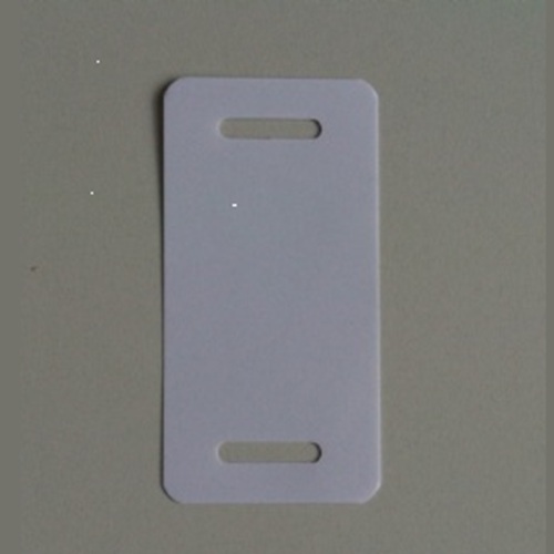 Kupa labels 54x110 mm kleur wit dikte 0,20mm 2 band-sleuven 25mm, afgeronde hoeken. 1000 stuks in doos. (kupa = papierlaagje+kunststof+papierlaagje)