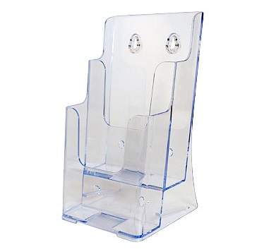 Folderbak staand model met 2 vakken achter elkaar, voor elk 1/3 A4 brochures. A-kwaliteit brochurehouder.