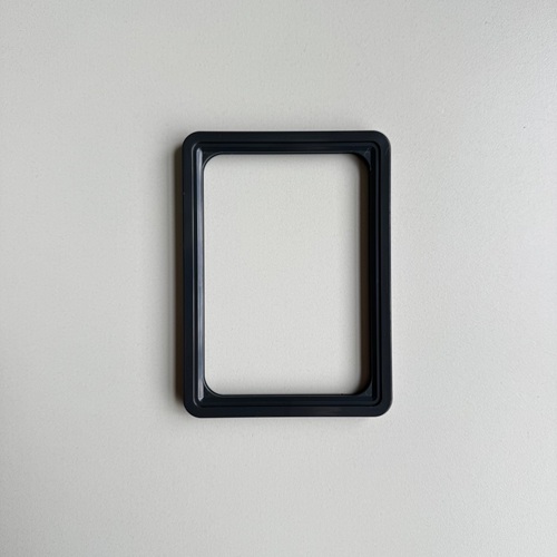 Prijskaartraam A6 zwart profiel-1. Geschikt voor papiermaat Din A6 = 10,5x14,8cm. De bovenste korte zijde heeft een vulopening. Kan ook horizontaal gebruikt worden.